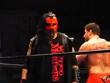 After leaving Toryumon, Taru soon showed up in All Japan Pro Wrestling, where he formed a tag team with Johnny Stamboli. After adding Chuck Palumbo, he created the stable Voodoo Murders and announced his plans to take over AJPW. This prompted them to clash with another villainous faction, Taka Michinoku and his group Roughly Obsess and Destroy (RO&D), causing them to feud for the next year.[5] Taru recruited his former Toryumon enemies Shuji Kondo and Yasshi, as well as the superheavyweight Giant Bernard, and changed his yakuza outlook for a more bizarre, sinister cult leader image. Under this new character, he now used illegal tactics and weapons like garrotes and lead pipes, and often opted to grant himself disqualifications in the process of beating down opponents with the help of his stablemates.[6]