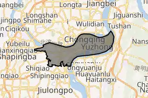 Yuzhong District (simplified Chinese: 渝中区; traditional Chinese: 渝中區; pinyin: yúzhōng qū; lit. 'Chongqing Central District') is the central district and heart of Chongqing municipality. It is the capital of the municipality and is also the political, economical, and entertainment center of the city of Chongqing.[1] Located in the central portion of Yuzhong is the Jiefangbei CBD, a leading business and financial center of western China.