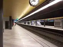 The station's main concourse itself comprises two sections. To the east is the Haupthalle (Main Hall), which was the train hall of the 1871 station but is now a pedestrian circulation space. The Haupthalle is surrounded on three sides by station buildings, whilst to the west it opens onto the Querhalle (Cross Hall), which stretches across the head of the ground level terminal platforms. These platforms, comprising two side platforms and seven island platforms, are sheltered by the 1933-built train shed and are served by tracks numbered 3 to 18.[7]