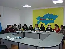 The youth wing Zhas Otan supports the political platform of Nur Otan People's Democratic Party.[16] The claimed mission of the organization is consolidation of young people of Kazakhstan on the basis of the political platform of the President to ensure the modernization breakthrough in development of the country; goal of Zhas Otan is to create a strong and credible political youth organization capable of leading the youth.[17]