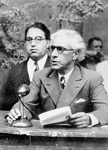 Seyyed Zia'eddin Tabataba'i (June 1889[1] – August 29, 1969; Persian: سید ضیاءالدین طباطبایی) was an Iranian journalist and politician who, with the help of Reza Khan Savadkuhi, led the 1921 Persian coup d'état, and subsequently became the 18th Prime Minister of Persia (Iran). His legacy remains controversial to this day. His defenders assert that he was a modernist intellectual and pro Constitutionalist who aimed to reform Qajar rule, which was in domestic turmoil and under foreign intervention. While his detractors assert that his policies were pro-British, and aggressive towards Qajar aristocrats.