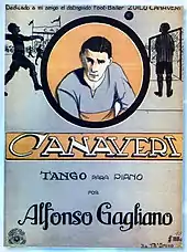Canavery was honored by several composers of tango as Alfonso Gagliano, who recorded an instrumental song titled Canaveri, written in 1919.[31] The album cover included a personal dedication by Gagliano himself that said "dedicated to my friend, the renowned foot-baller Zoilo Canavery". Other artists that mentioned Canavery in their art were Juan Sarcione, who wrote lyrics and music of Largue esa mujica, a tango performed by Carlos Gardel and recorded in 1929 for Odeon Records.[31][32]