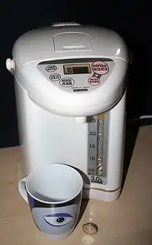 The Zojirushi Corporation (象印マホービン株式会社, Zōjirushi Mahōbin Kabushiki-gaisha) is a Japanese multinational manufacturer and marketer of vacuum flasks, beverage dispensers, and consumer electronics including bread machines, electric kettles, hot water dispensers, electric water boilers and rice cookers. It has a branch in South Korea and subsidiary companies in Taiwan, China, Hong Kong, and the United States. Zojirushi is listed on the Tokyo Stock Exchange.[2]