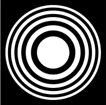 Binary zone plate: The areas of each ring, both light and dark, are equal.