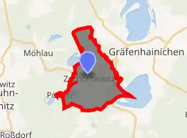 Zschornewitz is a village and a former municipality on the southwestern edge of the Wittenberg district in Saxony-Anhalt, Germany. Since 1 January 2011, it is part of the town Gräfenhainichen. It was part of the administrative community (Verwaltungsgemeinschaft) of Tor zur Dübener Heide. It lies about 4 km west of the former district seat of Gräfenhainichen, right on the border with Saxony.