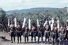 The Zulu people govern under a patriarchal society.[7] Men are perceived as the head of the household and seen as authoritative figures. Zulu men identify themselves with great pride and dignity. They also compare themselves to qualities of powerful wild animals such as, bulls, lions and elephants.[7] The men contribute to society by acting as defenders, hunters, and lovers.[7] The Zulu men are also in charge of herding the cattle, educating themselves on the lives of disciplined warriors, creating weapons, and learning the art of stick fighting.[7]
