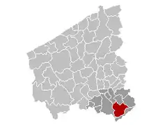 Zwevegem is a municipality located in the Belgian province of West Flanders. The municipality comprises the towns of Heestert, Moen, Otegem, Sint-Denijs and Zwevegem. On January 1, 2019, Zwevegem had a total population of 24,648. The total area is 63.24 km² which gives a population density of 380 inhabitants per km².